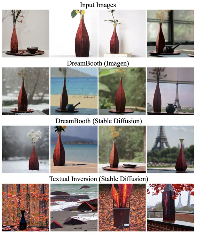 Textual Inversion과 비교했을 때 Dreambooth의 결과
